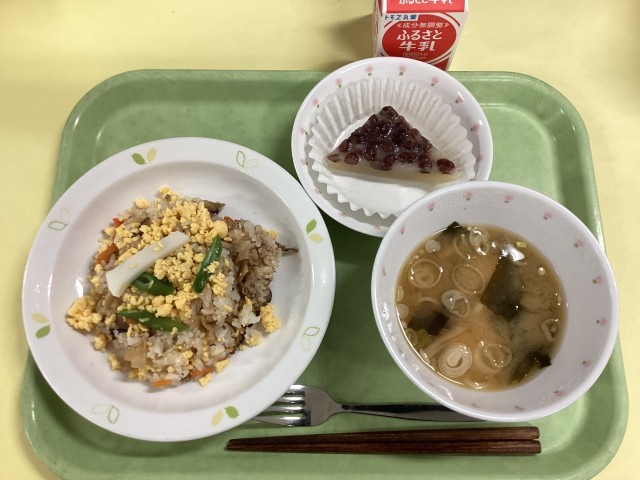 丹後のまつぶた寿司 豆腐とわかめのみそ汁 水無月 牛乳