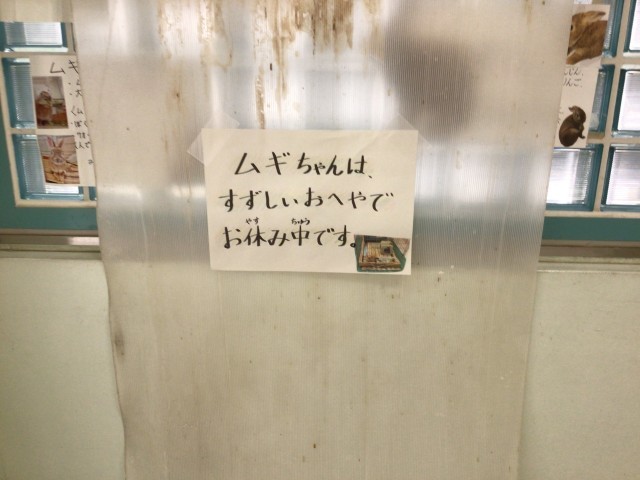 中丸小のアイドル、ウサギのムギが熱中症のため別室で休養しています。子どもたちも「ムギがいない!」と朝から心配しています。高齢なので本当に心配です。ゆっくり養生してもらいます。