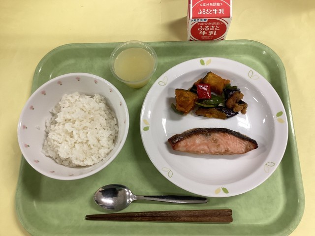 ごはん 鮭の照り焼き 夏野菜の南蛮かけ パインゼリー 牛乳