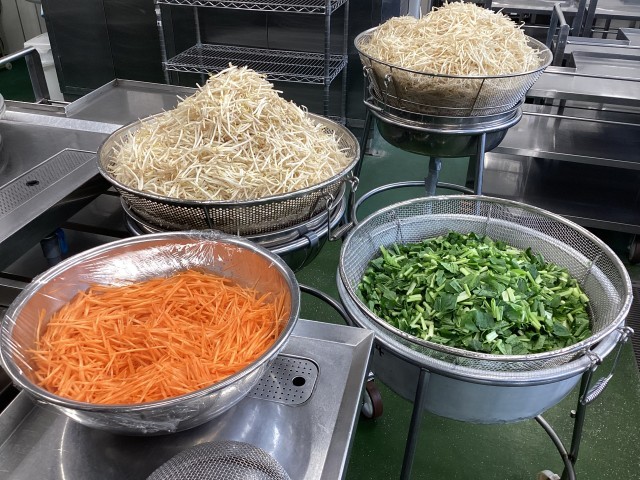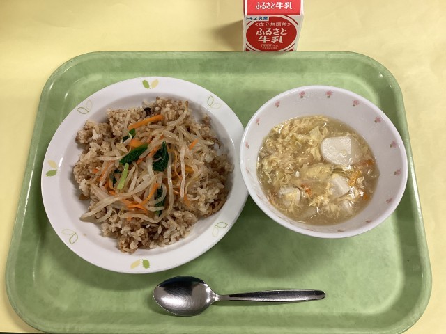 今日の給食は韓国料理です。トックは韓国の餅です。