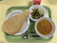 今日の献立ナン バターチキンカレー わかめサラダ 牛乳今日は6年2組が家庭科の授...