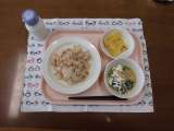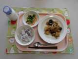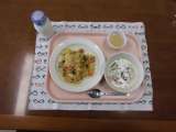 今日の献立は、チキンカレーライス・牛乳・和風サラダ・果物(りんご) です。 今...