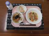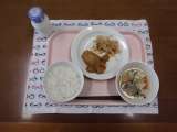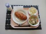 今日の献立は、揚げパン(シナモン)・牛乳・肉団子入り春雨スープ・コーンポテト で...