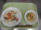 <本日の献立> パインパン ヘルシーハンバーグ スパゲティカレーソテー コンソメ...