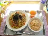 ランチ☆つうしん 今日の献立は、和風スープスパゲティ、タラモサラダ、キャロ...