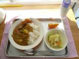 ランチ☆つうしん 今日の献立は、カレーライス、キャベツサラダ、紅まどんな(...