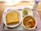 ランチ☆つうしん 今日の献立は、はちみつレモンバタートースト、ボルシチ、 ...