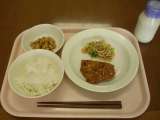 ランチ☆つうしん 今日の献立は、ごはん、めかじきのピーナッツがらめ、梅ドレッシ...