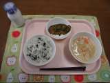 今日の献立は、 わかめごはん・牛乳・魚の香味焼き・豆乳汁 です。 魚の香味焼...
