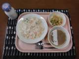 今日の献立は、 キャロットライスのホワイトソースかけ・牛乳・コンソメスープ・ ...