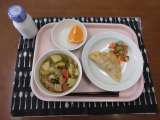 今日の献立は、 カレーうどん・牛乳・かぼちゃの包み揚げ・ 野菜のゆずドレッシ...