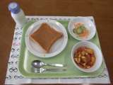 今日の献立)きなこバタートースト・牛乳・和風チリコンカン・フレンチサラダ 「き...