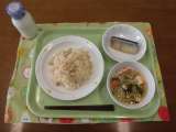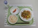 今日の献立)ツナライス・牛乳・野菜と肉のインド煮・果物(りんご) 「野菜と肉の...