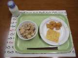 今日の献立)ひじきごはん・牛乳・切り干し大根の卵焼き・じゃがいもの甘辛煮 今...