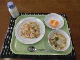 今日の献立)ナシゴレン・牛乳・韓国風スープ・果物(みかん) 「ナシゴレン」はイ...