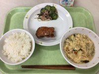 今日の献立ごはん 鮭の塩焼き おひたし チンゲンサイときのこのみそ汁 牛乳今日の...