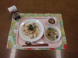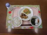 今日の献立 磯おこわ・牛乳・魚の照り焼き・かきたま汁 今日の魚は「さわら」で...