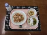 今日の献立 マーボー豆腐丼・牛乳・野菜スープ・ビーンズサラダ 3月は「弥生」...
