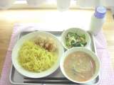 ランチ☆つうしん 今日の献立は、中丸ラーメン(つけ麺)、白菜中華あえ、 さ...