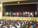 4月27日(金)、体育館にて音楽朝会を行いました。 離任式で歌う「きみとぼく...