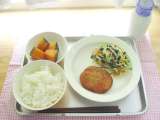 ランチ☆つうしん 今日の献立は、ごはん、鮭のみそマヨネーズ焼き、ごま酢かけ...