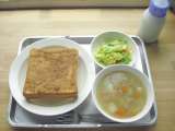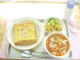 ランチ☆つうしん 今日の献立は、はちみつレモンバタートースト、ミネストロー...