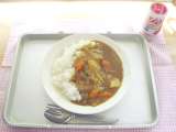 ランチ☆つうしん 今日の献立は、カレーライス、糸寒天サラダ、福神漬け、 飲...