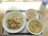 ランチ☆つうしん 今日の献立は、キムチ丼、みそ汁、河内晩柑、牛乳です。 ...
