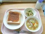 ランチ☆つうしん 今日の献立は、きなこバタートースト、ABCスープ、豆サラ...