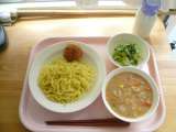 ランチ☆つうしん 今日の献立は中丸ラーメン、白菜中華あえ、さつまいものごま...