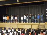 4月26日(金)、体育館で音楽朝会を行いました。 今日は、5月2日に行われる離...