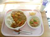 ランチ☆つうしん 今日の献立は、カレーライス、こんにゃくサラダ、日向夏、牛...