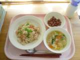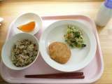 ランチ☆つうしん 今日の献立は、子ぎつねごはん、若竹汁、ししゃもから揚げ、...