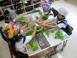 4月30日(火) 1年1組でグリンピースのさやむきをしました。 はじめてさ...