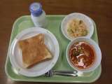 今日の献立)シナモントースト・牛乳・ポークビーンズ・野菜のイタリアンドレッシング...