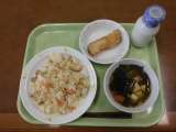 今日の献立)五目寿司・牛乳・魚の立田揚げ・すまし汁 今日は1年生を迎える会があ...