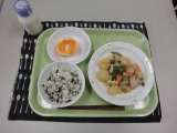 今日の献立)わかめごはん・牛乳・春野菜のうま煮・果物(清見オレンジ) 進級おめ...