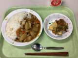 今日の献立 チキンカレーライス 野菜チップス 牛乳