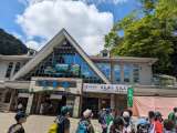 高尾山駅前に着きました。今から登ります。気持ちのよい青空です。