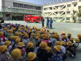 中丸小の校庭に消防車が来ています。1・2年生のために世田谷消防署の方が来てくだ...
