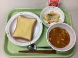 今日の献立 はちみつレモントースト ビーンズシチュー 野菜ソテー 牛乳