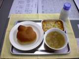 ランチ☆つうしん 今日の献立は、パンプキンパン、豆腐グラタン、コンソメスー...
