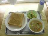 ランチ☆つうしん 今日の献立は、セサミトースト、白いんげんの田舎風スープ、...