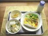 ランチ☆つうしん 今日の献立は、グリンピースごはん、フレンチエッグ、野菜の...
