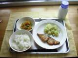 ランチ☆つうしん 今日の献立は、ごはん、魚の七味焼き、切り干し大根のサラダ...
