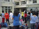 5/29(水) <出発式> 7:40 欠席者ゼロ! 全員そろっての出発式の様子...