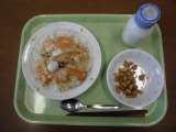 今日の献立)中華丼・牛乳・大豆とじゃこの甘辛揚げ
