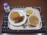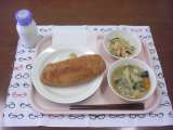 今日の献立は、 揚げパン(きなこ)・牛乳・肉団子入り野菜スープ・中華サラダ ...