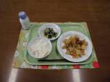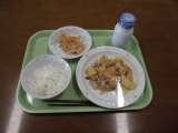 今日の献立)ごはん・牛乳・鶏肉とコーンの揚げ煮・カリじゃこサラダ