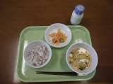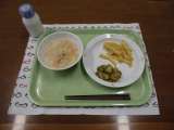 今日の献立)ちゃんぽんうどん・牛乳・フライドポテト・きゅうりと大根のごま風味 ...